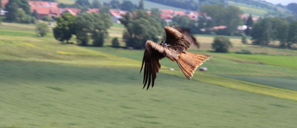 besenderter Rotmilan im Flug